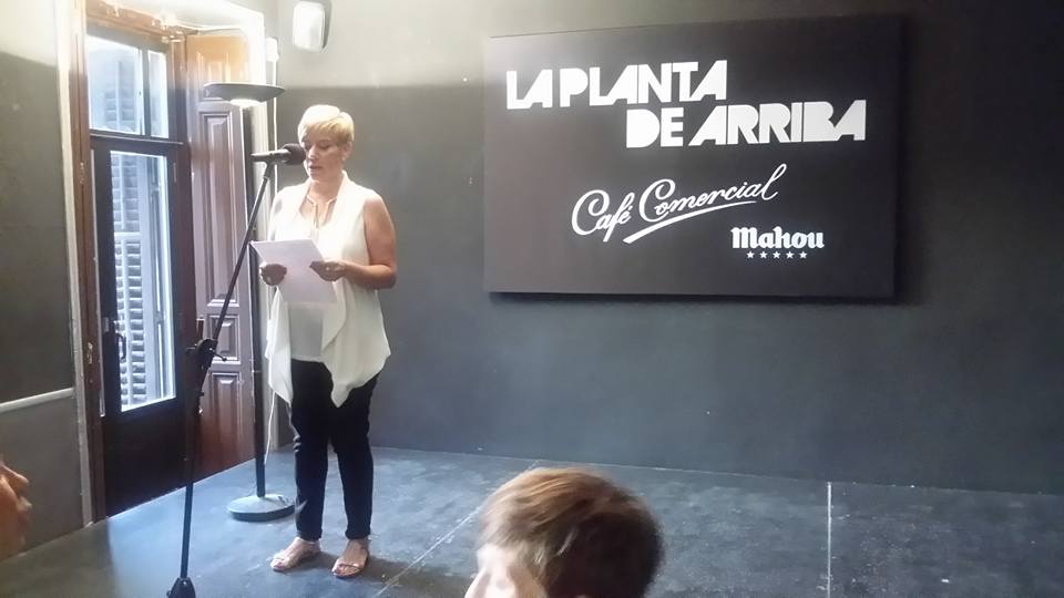 Rosa Mª Estremera participando en un acto poético en el célebre Café Comercial.